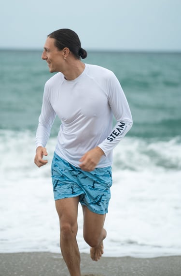 Para STEAM, marca de BeachWear especializada en moda masculina, desarrollamos una producción fotográfica en las playas del Tayrona, un escenario natural que potenciaba la estética de la colección.